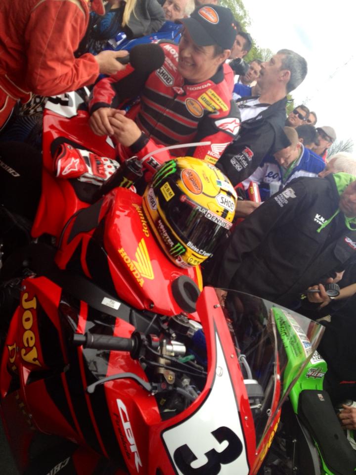 Alle ore 14.50 finalmente il via all’attesissima Dainese Superbike: partono James Hillier, Cameron Donald, John McGuinness, Guy Martin e via via tutti gli altri.