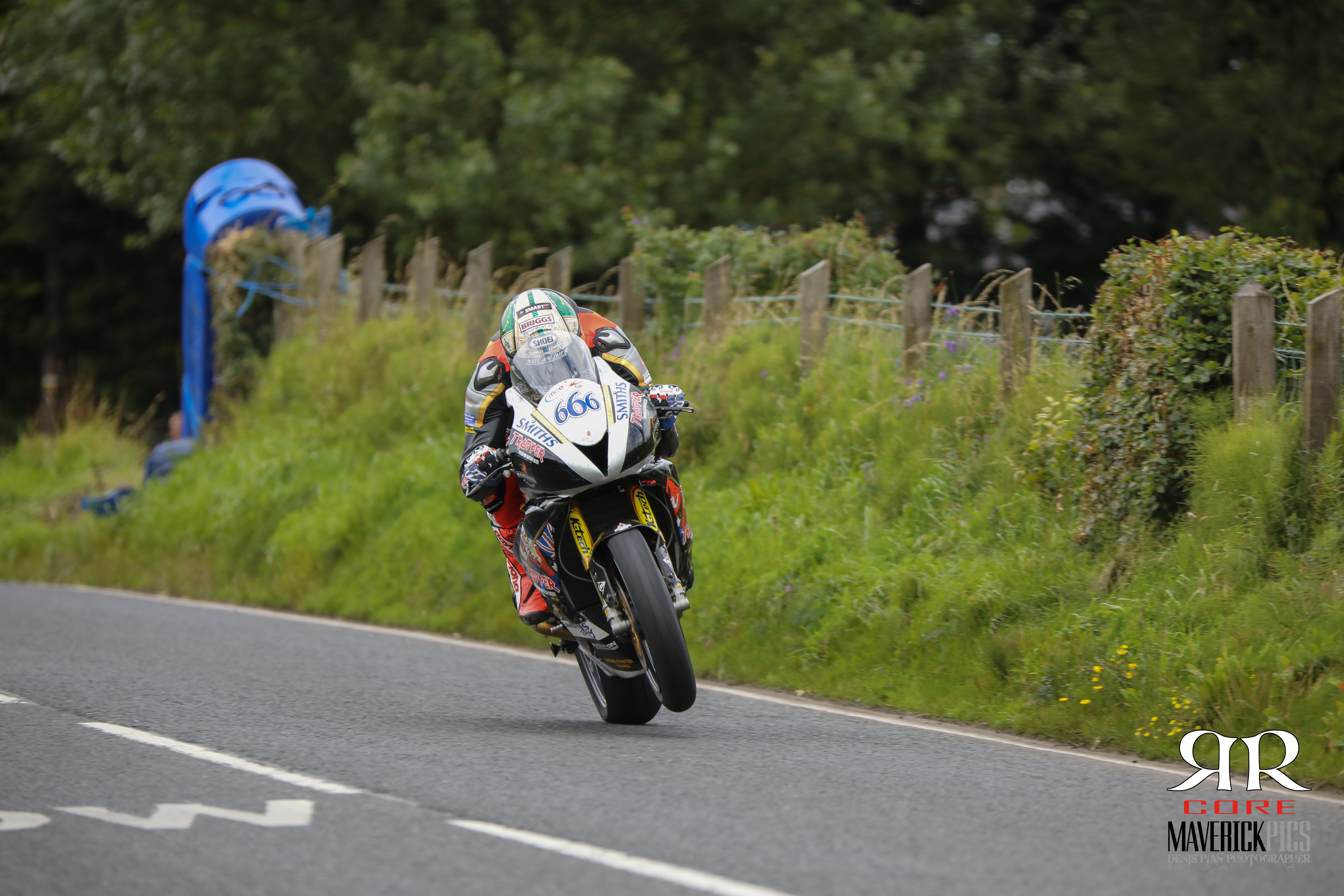 Ed è poi il turno delle “big bikes”: in griglia le Superbike per la prima delle due gare dedicate alla massima categoria, con Peter Hickman di nuovo in pole e favorito assoluto. Ma non andrà esattamente come da copione. Al via è il manxman Cummins a dare del filo da torcere a Hickman, tallonando la Smiths BMW con la Padgett’s Honda e portandosi in testa alla staccata di Leathemstown al secondo giro; Hickman si riprende la prima posizione sui saliscendi di Deer’s Leap, mentre il gruppo alle loro spalle vede emergere Bruce Anstey che si mette alla caccia del duo di testa. E proprio al secondo passaggio il “kiwi” si riprende il titolo di road racer più veloce al mondo facendo segnare il nuovo record dell’Ulster Grand Prix a 134.235 mph di media, record che gli era appartenuto dal 2010 al 2016 quando gli fu soffiato da Ian Hutchinson. E record rotto poi giovedì da Peter Hickman. Ma non è finita qui. Grazie ad un giro in 3’18’’488, Anstey piomba su Hickman e Cummins, passando prima il suo compagno di squadra a Wheeler’s e poi affrontando Hickman, ritoccando il record e sfrecciando a 134.396 mph. Ma è un tripudio di giri veloci a 134 mph anche da parte dei diretti inseguitori, grazie al meteo fantastico e le condizioni del tracciato perfette. Al termine del terzo passaggio Anstey si porta in testa, mentre Cummins è alle prese con il connazionale Kneen su Tyco BMW. Ma è dalla quinta piazza che arriva il nuovo lap record Ulster GP al quarto passaggio: è Dean Harrison con la Kawasaki Silicone Engineering a girare alla media di 134.614 miglia orarie di media! Harrison riesce a passare prima Dan Kneen e poi Cummins, con soli 1.2 secondi tra i primi 5. Giro sei, Hickman torna in testa a Wheeler’s: ecco la bagarre che tutti aspettavano, anche se qui il pubblico è, per la maggior parte, infuocato per il neozelandese Anstey, pilota e persona formidabile. Hickman, Anstey, Harrison, Kneen che riesce a passare Cummins all’esterno al Lindsay Hairpin: mentre si ritira Michael Dunlop, l’ultimo giro di gara porta l’adrenalina a mille. Bruce Anstey torna in testa a Joey’s Windmill, Hickman lo punta, si inserisce, ma non passa. E’ Bruce Anstey con la RC213V-S a vincere questa Superbike Race per il Team Padgett’s, con Peter Hickman al secondo posto a soli due decimi; terzo è Dean Harrison, poi Dan Kneen, Conor Cummins, Derek Sheils, Davo Johnson, Jamie Coward, Sam West e Daley Mathison.