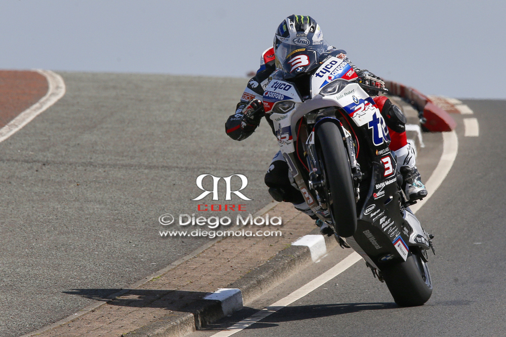 Michael Dunlop mette in mostra tutta la sua guida “fisica” a Black Hill sulla BMW Tyco by TAS tra le Superbike (foto: Diego Mola)