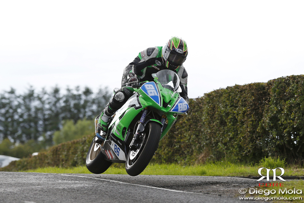 Mentre grossi nuvoloni neri si fanno sempre più minacciosi sopra il villaggio di Armoy, la Classic Race viene vinta da Ed Manly. Quando arriva il momento delle “big bikes” il tracciato è ormai definitivamente bagnato: viene quindi lasciato il tempo per un veloce cambio gomme alle 1000cc (e 600cc) e la Open viene dichiarata “wet race”. Nel frattempo il tipico meteo irlandese ci mette lo zampino e il sole inizia ad asciugare parte del tracciato; dopo un altro warm-up lap i piloti si trovano a scegliere di cambiare nuovamente le gomme… Alle 14.15 locali la Open Race prende finalmente il via, con Michael Dunlop (Bennetts Suzuki) in pole affiancato dal fratello William (Yamaha Temple Golf) e Derek McGee che opta per il 600cc. Ed è proprio il “missile di Mullingar” a prendere le redini della corsa su Michael Dunlop, Adam McLean, James Cowton e Paul Jordan, con William scivolato indietro. Ma il mastino di Ballymoney studia McGee, fino ad infilarlo all’inizio del quinto passaggio e distaccarlo poi alla bandiera a scacchi di 4.6 secondi, proprio come nella Supersport, attendendo il momento opportuno per sferrare un attacco che sembra un gioco da ragazzi. McGee, l’unico a tenere testa a Dunlop, guadagna il secondo gradino del podio con la R6 B&W, con il newcomer Davey Todd terzo a +16 (e partito dal secondo gruppo), su Kawasaki 600cc. Seguono William Dunlop, Paul Jordan, James Cowton, Joey Thompson, Mark Goodings, Dominic Herbertson e Forest Dunn a chiudere la top ten di una gara con soli 13 piloti a traguardo: molte le assenze, molti i piloti ad aver deciso di non correre troppi rischi con queste condizioni meteo. Ritirati invece Adam McLean (mentre si trovava in terza posizione) e anche uno dei soliti protagonisti delle Nationals irlandesi, Micko Sweeney, che oggi pare proprio non volerne sapere. Ricordiamo invece l’assenza del “re delle Nationals” Derek Sheils a causa di un impegno ad un matrimonio nella giornata di qualifiche di venerdì; se molto spesso i Club permettono ai piloti di qualificarsi il sabato prima delle gare, il Motorcycle Club di Armoy ha sorprendentemente negato questa possibilità al leader del campionato Sheils.