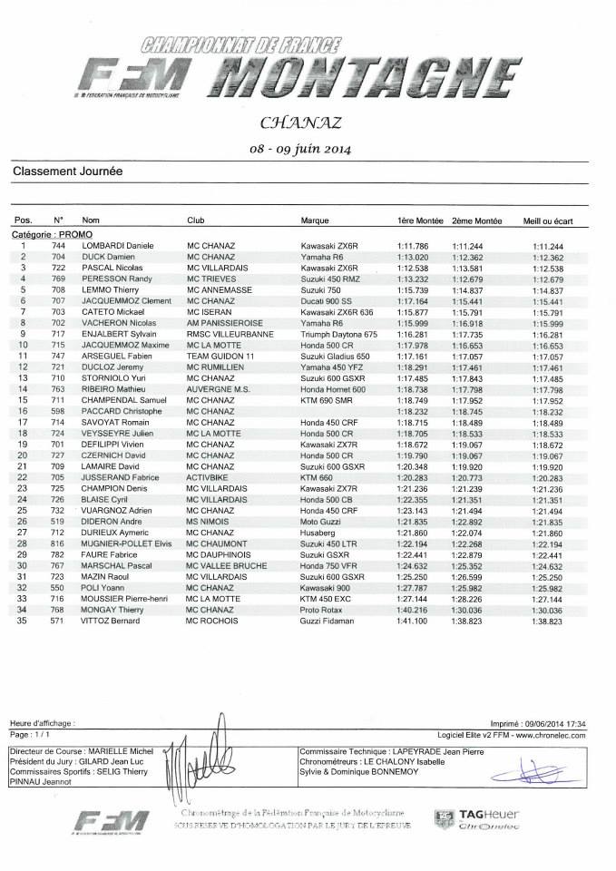Ecco la classifica completa classe Promo – Course de Côte de Chanaz (clicca sull’immagine per ingrandire):