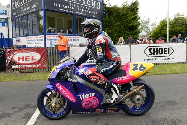 “Mcpint” sarà anche protagonista di un nostalgico parade lap con l’indimenticabile Honda Vimto Demon 250cc.