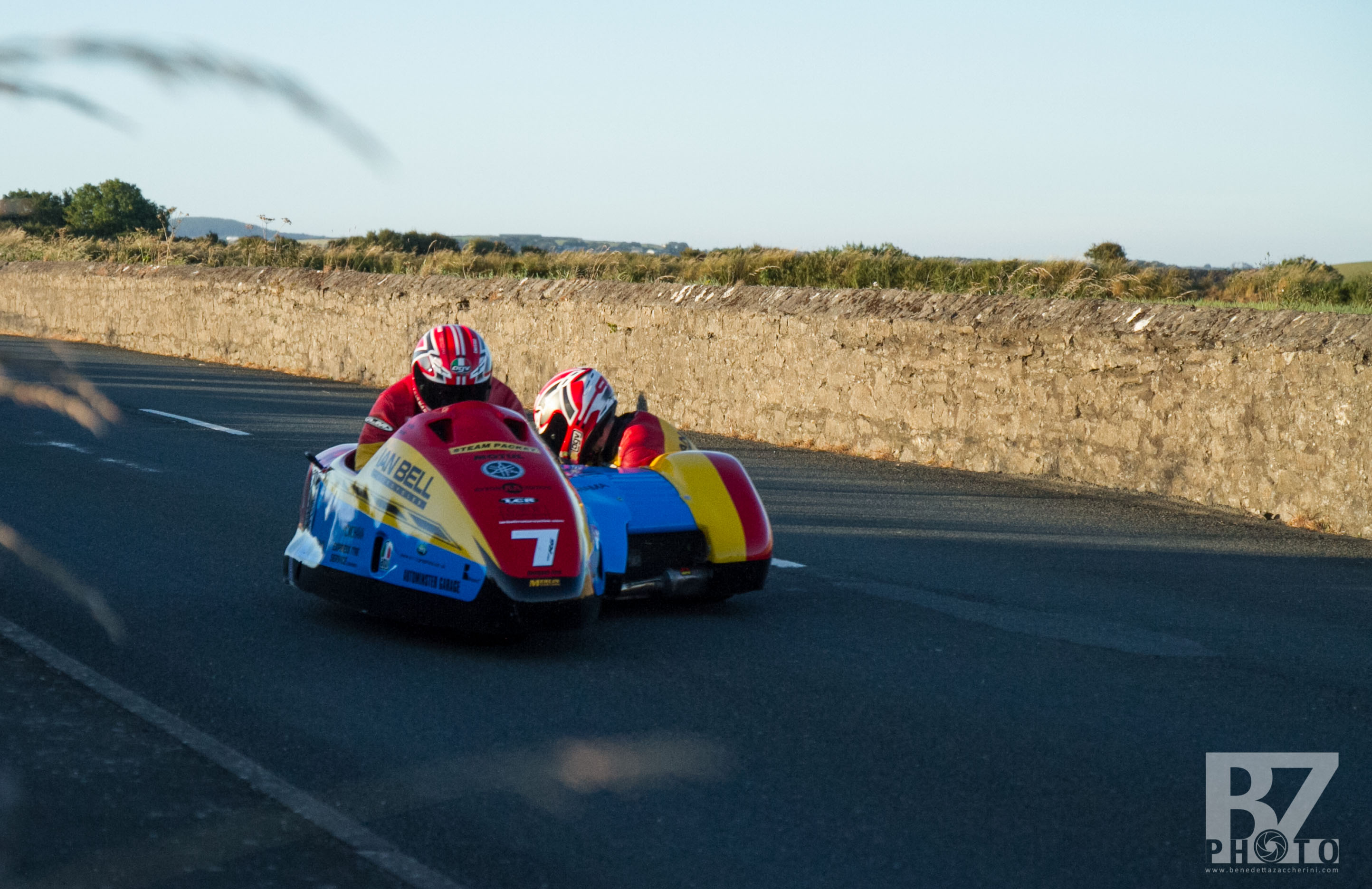 Nonostante ciò e con un po’ di ritardo la gara parte: sono John Holden e Andy Winkle (LCR Honda) a portarsi in testa ai danni di padre e figlio Ian e Carl Bell (LCR Yamaha); a seguire Molyneux/Binns (DMR Kawasaki), Bryan/Winn (Baker Honda), Lindley/Kilkenny (LCR Suzuki) e Harrison/Crowe (Shelbourne Honda). Ma la leadership di Holden dura poco: al secondo passaggio i Bell sono davanti a tutti superando l’equipaggio avversario a Crossfourways. La coppia Molyneux/Binns spinge e riesce a portarsi in seconda posizione al giro successivo, mentre Conrad Harrison fa segnare tempi interessanti e rimonta fino alla quarta piazza. Nei 6 giri in programma il precedente record di Nick Crowe rimane imbattuto, ma la gara non manca certo di adrenalina: Holden e Winkle si ritirano al penultimo passaggio, mentre Conrad Harrison (padre di Dean) e Jason Crowe danno spettacolo nella loro rimonta. Bagarre anche al vertice tra i Bell e Moly, ma padre e figlio non mollano e tagliano il traguardo con 7 decimi di vantaggio sul pluricampione Molyneux. Solo 3 decimi separano invece Harrison/Crowe, terzi classificati, da Lindley/Kilkenny, che hanno dato vita ad una serie di passaggi mozzafiato tra i muretti dello stretto Billown Circuit.
