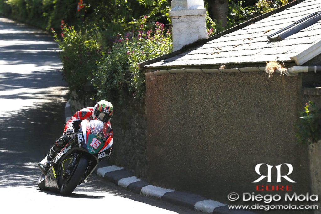 Al primo rilevamento di Glen Helen, però, la sorpresa: nonostante Michael avesse già fatto segnare il nuovo record delle Supertwin in prova (quindi non ufficiale), è l’irlandese Derek McGee a comandare la gara. Il “Mullingar Missile”, dominatore delle Nationals, è in testa cronometricamente con la Er6 KMR preparata da Ryan Farquhar. Alle sue spalle Ivan Lintin, già due volte vincitore al TT classe Lightweight sulla Kawasaki RC Express; terzo a 1 secondo da Lintin è Michael Dunlop, mentre Bonetti è attardato di 6 secondi. A Ramsey è invece l’inglese Lintin a guidare la corsa, con McGee al secondo posto, mentre il suo compagno di squadra Davo Johnson (chiamato da Farqhuar a sostituire Hutchinson dopo il veto di Honda Racing a lasciar guidare una Kawasaki a Ian) si ritira a Sulby. Al termine del primo giro Ivan Lintin fa segnare il nuovo record della classe Twin con un 121.6 con partenza da fermo. Fantastico! McGee è ora a 5 secondi tallonato a +1 da Michael Dunlop, mentre Stefano accusa un ritardo di 18 secondi. Segue un ottimo James Cowton su Kawasaki McAdoo, poi Michael Rutter.